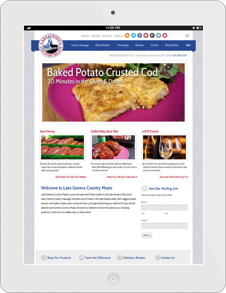 Lake Geneva Country Meats is your one stop fresh food market in the Lake Geneva, Wisconsin area. They are home to Leahy’s Sausage, the best cuts of meat in Lake Geneva, fresh veggies, bread, sauces, marinades, cheese, beer, wine and more.