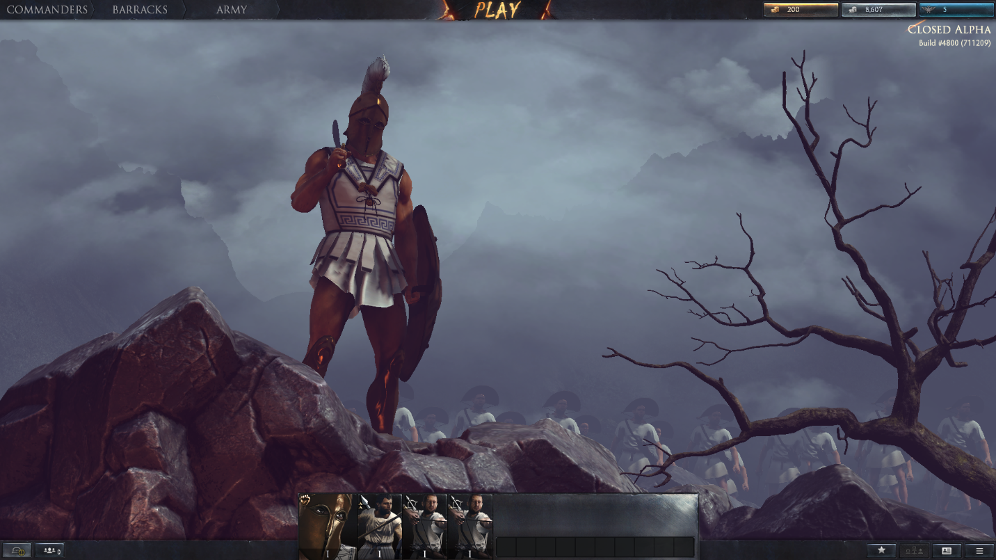 Total War: Arena differs from this formula in a few ways. Firstly, it’s an online game so you won’t have the usual single player conquest experience. In Arena you play in 10v10 matches, choosing one of a selection of ancient leaders (Leonidas, Julius Caesar, etc) and a few hundred soldiers of your choosing.